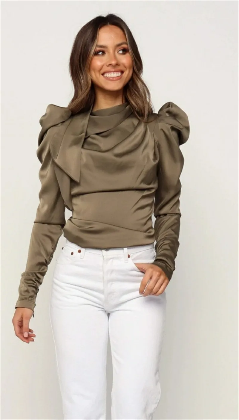 New 2019 Fashion Women Satin Blouses Bow Neck Long Sleeve Elegant Blouse Office Lady Shirts Female Blus