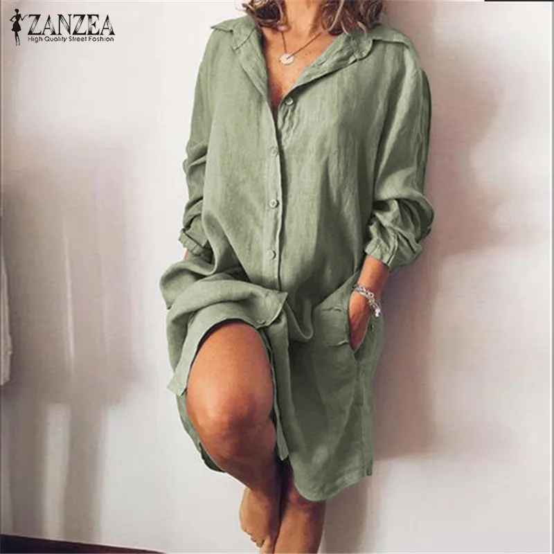 Best 2019 ZANZEA Casual Shirt Vestidos Women's Lapel Blouse Stylish Button Long Sleeve Shirts Female Wor