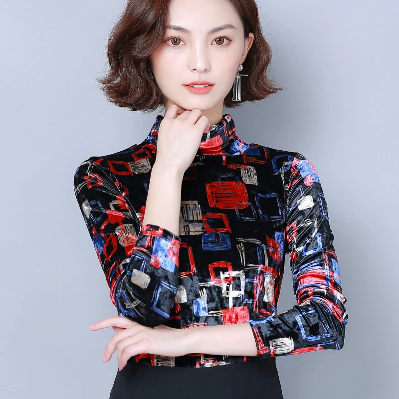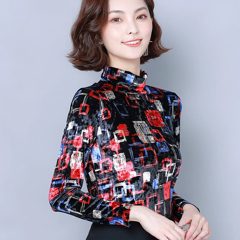 Buy Autumn Winter Fashion Long Sleeve Turtleneck Women Blouses New Print Pullover Slim Women Shirts Plu