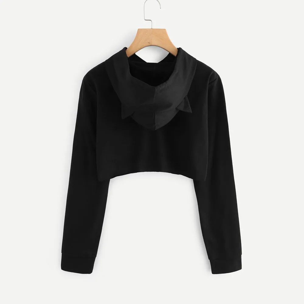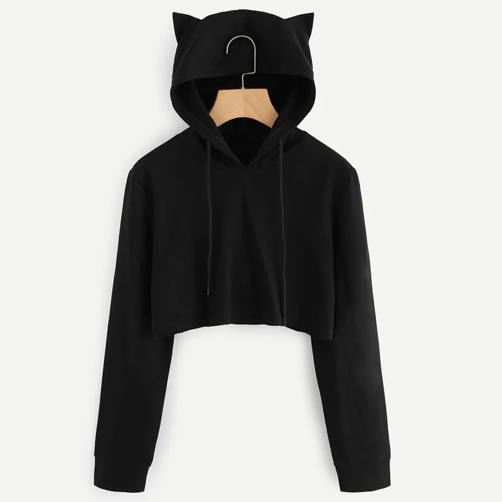 New Jaycosin Womens Autumn Cat Ear Long Sleeve Hoodie Blouse Casual Chic Attractive Printing Cotton Hoo