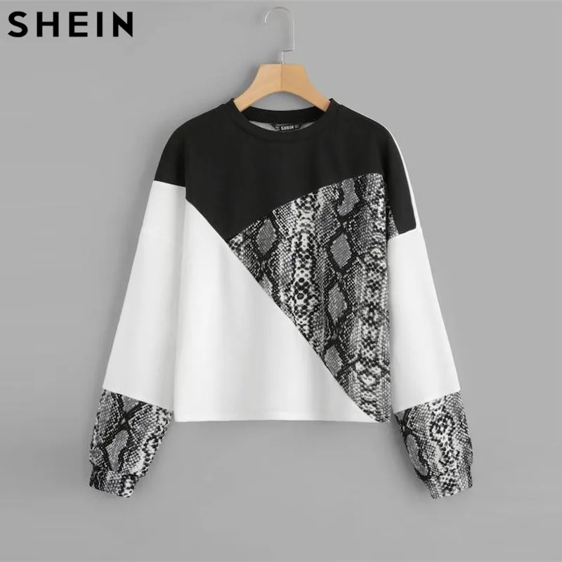 Today i want to review about SHEIN Color Block Snake Skin Sweatshirt Preppy Round Neck Long Sleeve Pullovers Women Autumn Multic. I uncover this cool product from China Online Store, best manucafturer.