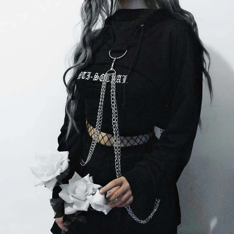 Promo SUCHCUTE Punk Hoodies Kpop Sweatshirts Women Gothic Summer 2019 Metal Chain Hip Hop Harajuku Hoodie