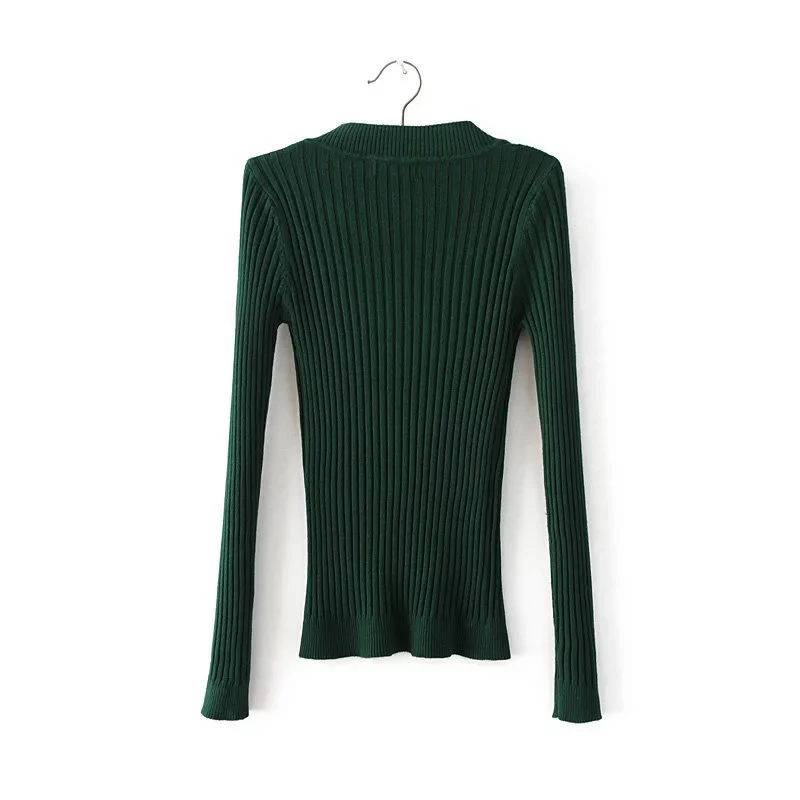 Buy 2019 New Spring Deep V Forest Green Pullovers Woman Stretch Knitted Sweater Women Elastic All Match