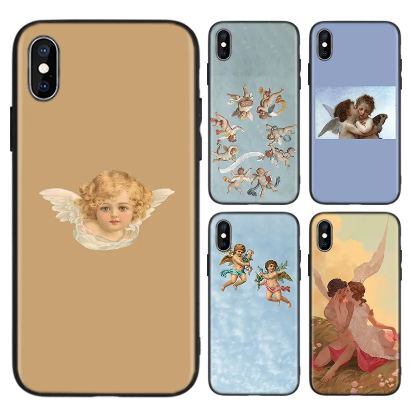 Promo Angel Cupid Art Case for Apple iphone 11 Pro XR XS Max X 7 8 6 6S Plus 5 5S SE Black Silicone Phone