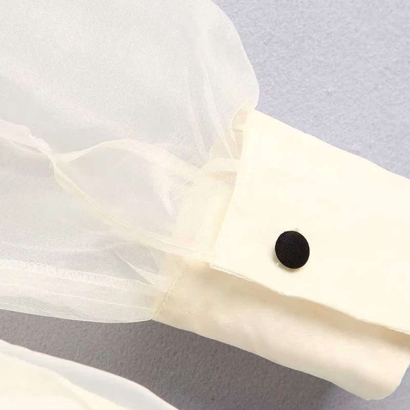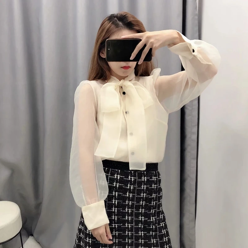Buy new women elegant solid transparent casual organza Shirts blouses women bow tied o neck roupas femi