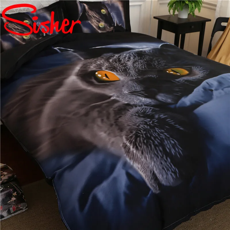 Buy Sisher Adult Duvet Cover Set 3D Printed Animal Cat Comforter 4pcs Bedding Sets King Size Single Ful