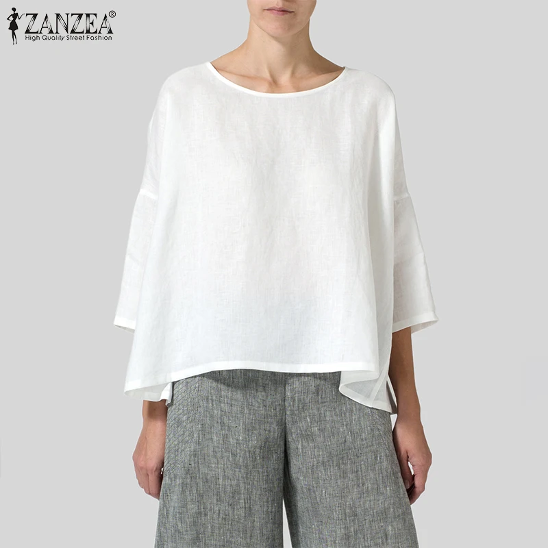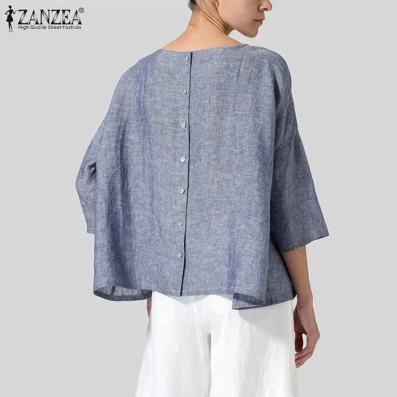 Buy ZANZEA Women Elegant Blouse Summer O Neck 3/4 Sleeve Work Shirt Casual Chemise Solid Buttons Blusas