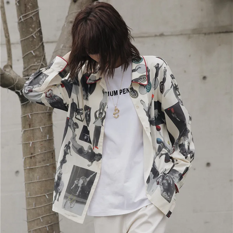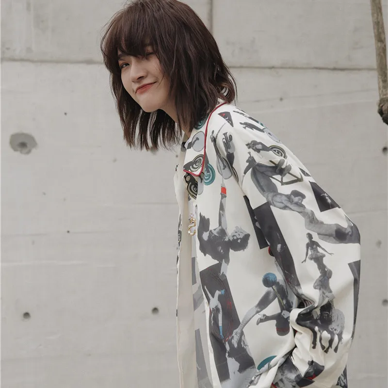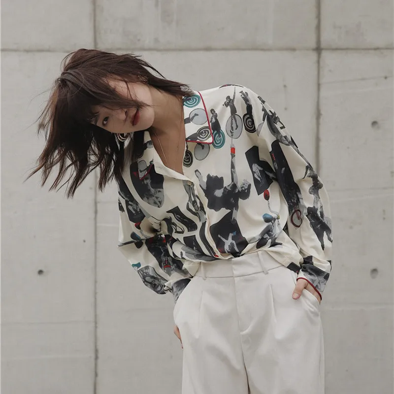 Buy CHEERART Circus Print Vintage Blouse Long Sleeve Button Up Collar Shirt Designer Top Woman Blouses