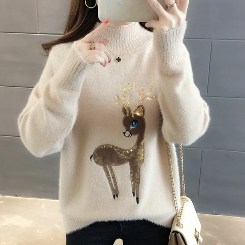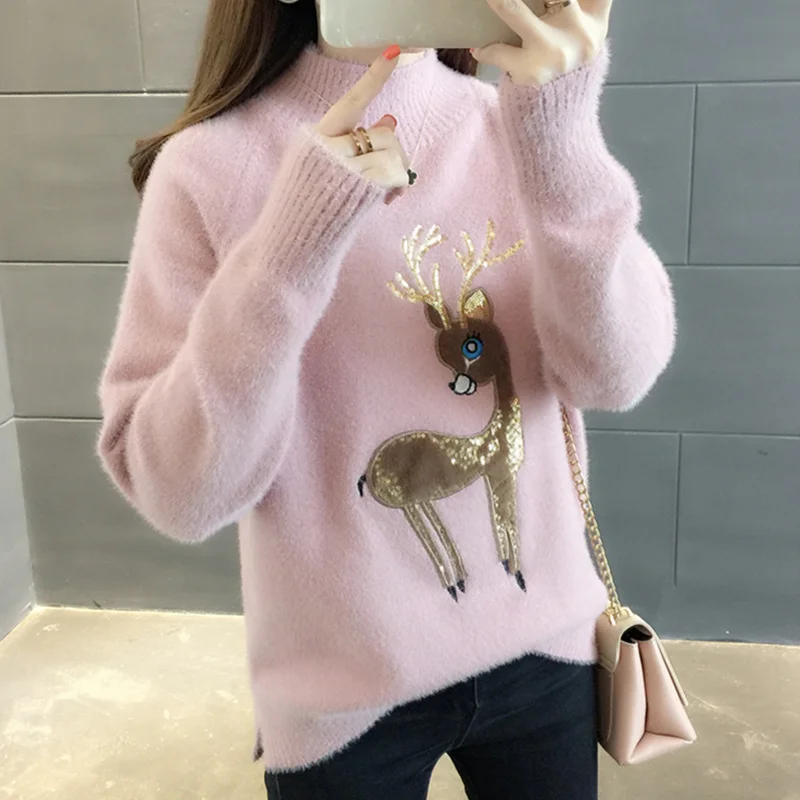 Promo Cute Sweater Korean Reindeer Ugly Christmas Sweater Women Winter Warm Sweaters Fluffy Cashmere Jump