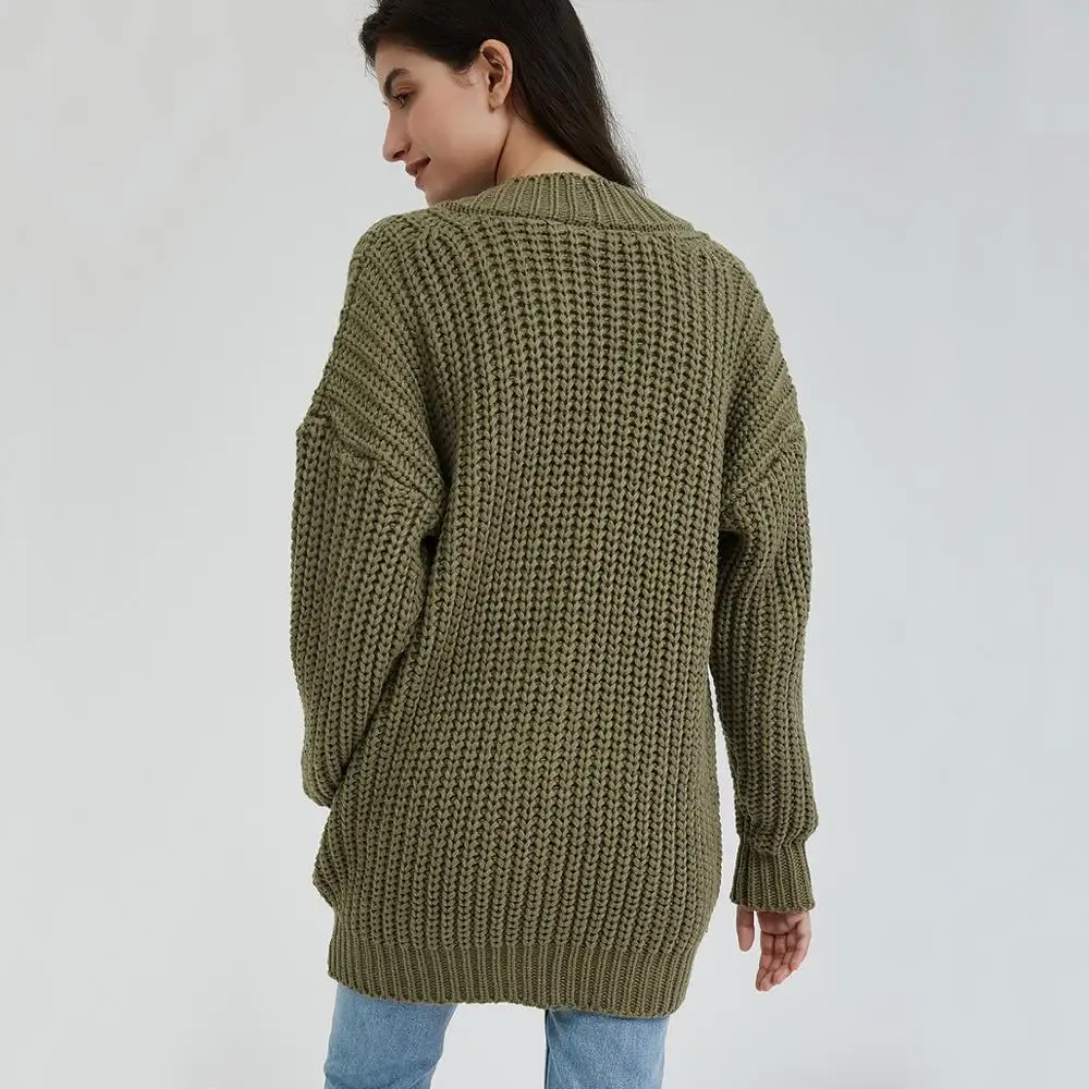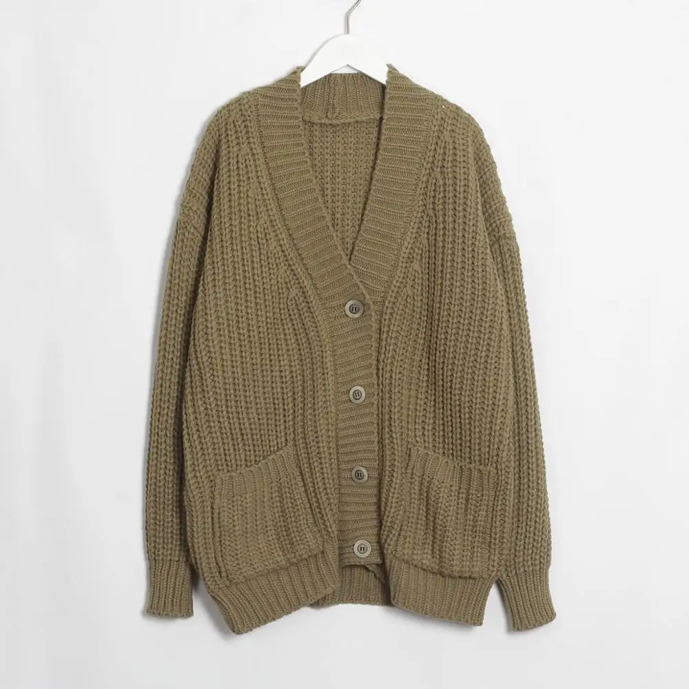 New Wixra Knitted Chunky Cardigan Sweater Women Pockets Solid Thick Tops Clothing Stylish Sweater for F