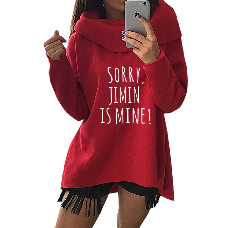 Promo New Fashion SORRY JIMIN IS MINE Print Sweatshirts Tops Hoodies Women Casual Loog Sleeve Hoody Patte