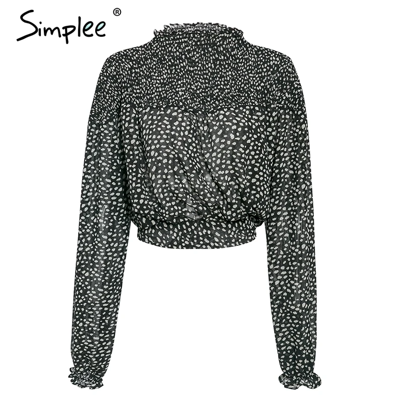 Best Simplee Sweet dot long sleeve women blouses Elegant lace up chiffon crop top Autumn winter pullover