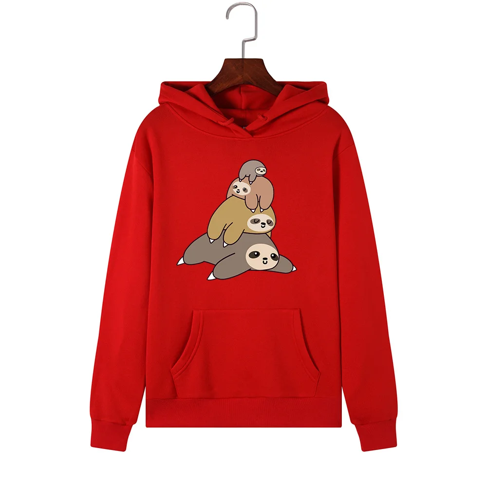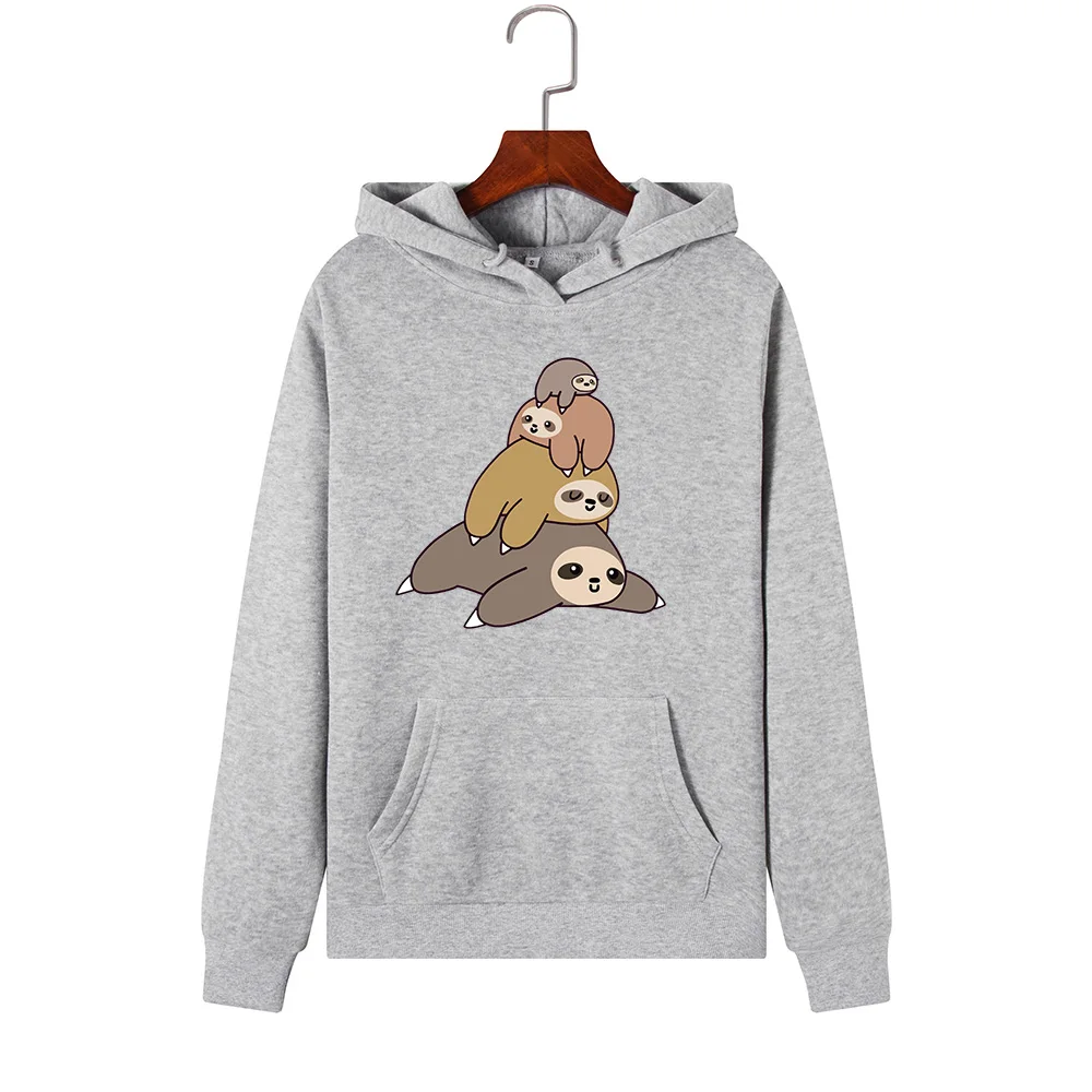 Promo Women Hoodies Sweatshirts Hooded Sweatshirt Funny Animal Sloth Print Top Autumn Winter Pullover Fem